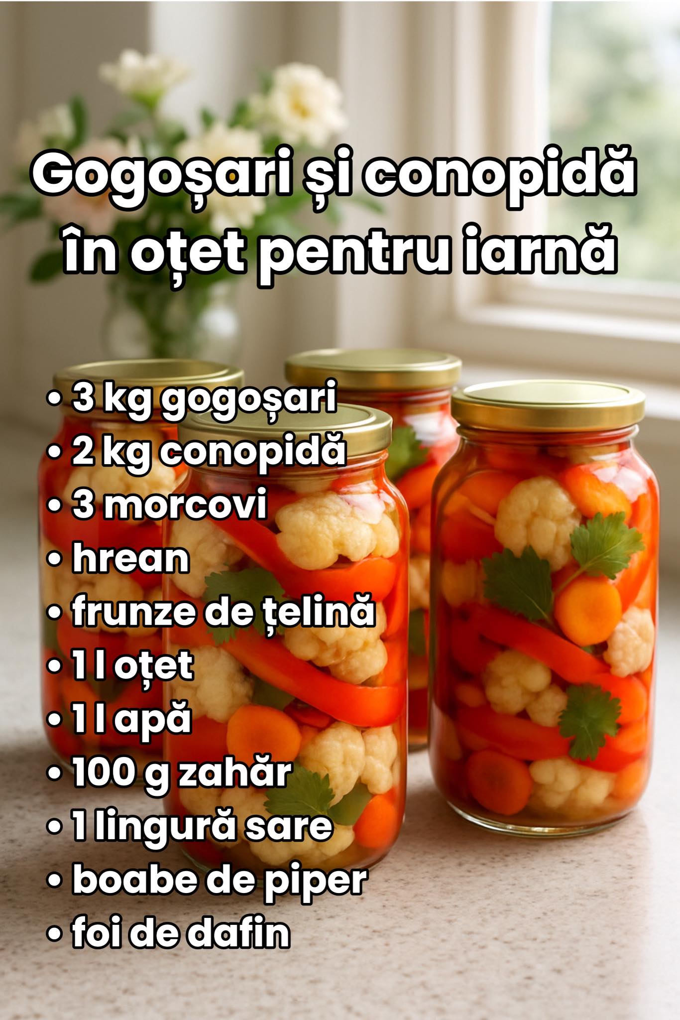 ✨ Gogoșari și conopidă în oțet pentru iarnă: Rețeta crocantă și aromată 🫙🥦🥕