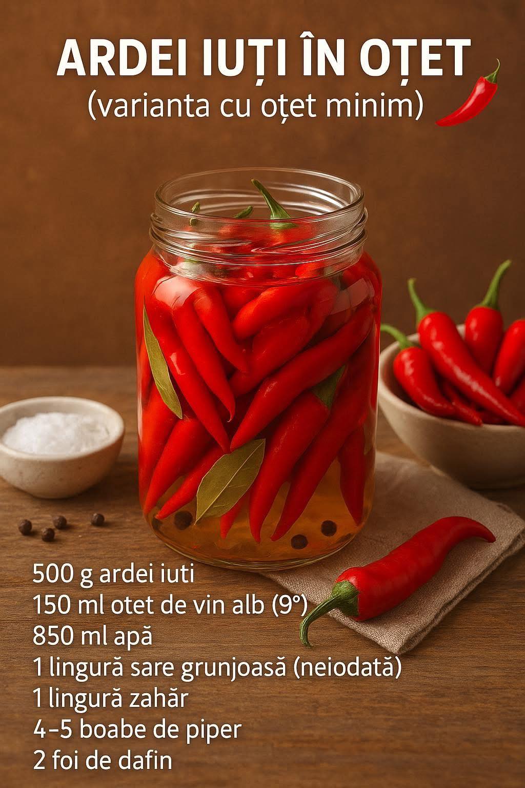 🌶️ ARDEI IUȚI ÎN OȚET: Rețeta cu Oțet Minim și Mult Gust 🌶️