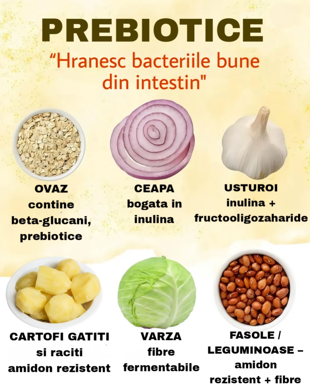 Usturoiul și Ceapa 🧄: Conțin inulină, o fibră care stimulează creșterea bacteriilor bune.