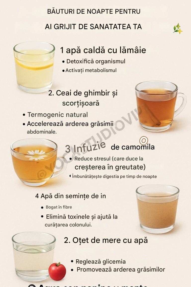 Îngrijirea corpului nostru nu depinde doar de ceea ce mâncăm în timpul zilei, ci și de ceea ce bem înainte de culcare. Există băuturi naturale care ajută la relaxarea organismului, îmbunătățesc digestia și promovează arderea grăsimilor în timp ce dormim. Iată cinci băuturi ideale pentru noapte, pentru a avea grijă de sănătatea ta.