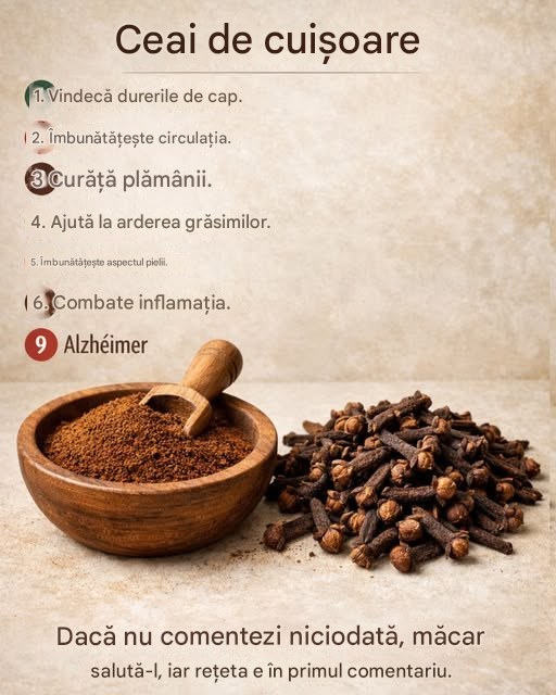 Ceaiul de cuișoare, un elixir cald și aromat, nu este doar o băutură; este o comoară ancestrală care a vindecat generații întregi, de la bucătăriile asiatice până la remediile bunicilor din America Latină. Și ce-ar fi dacă ți-aș spune că fiecare înghițitură poate calma stomacul, poate întări sistemul imunitar, poate îmbunătăți circulația și chiar poate proteja împotriva bolilor grave? Continuă să citești, pentru că acest secret nu are grijă doar de corp – atinge sufletul, trezind o energie care te face să te simți viu, puternic și conectat la magia naturii.