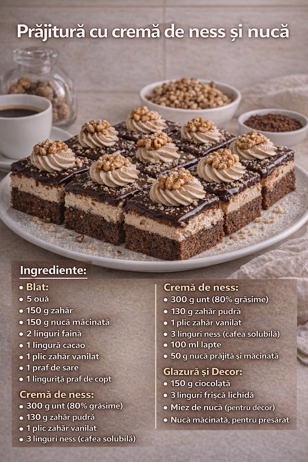 Prăjitură cu cremă de ness și nucă – rețetă delicioasă