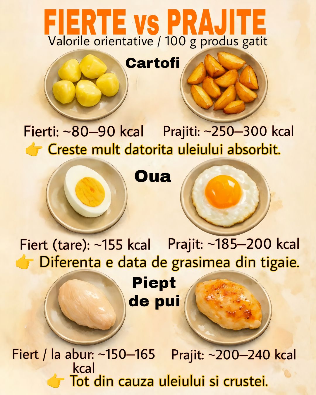 Fierte vs Prajite – aceeasi mancare, calorii foarte diferite