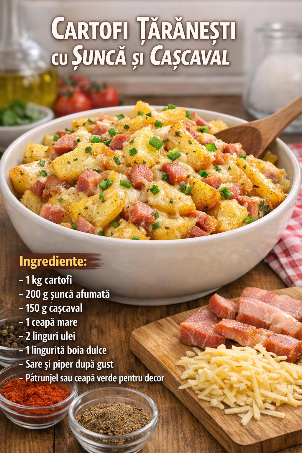 Cartofi țărănești cu șuncă și cașcaval
