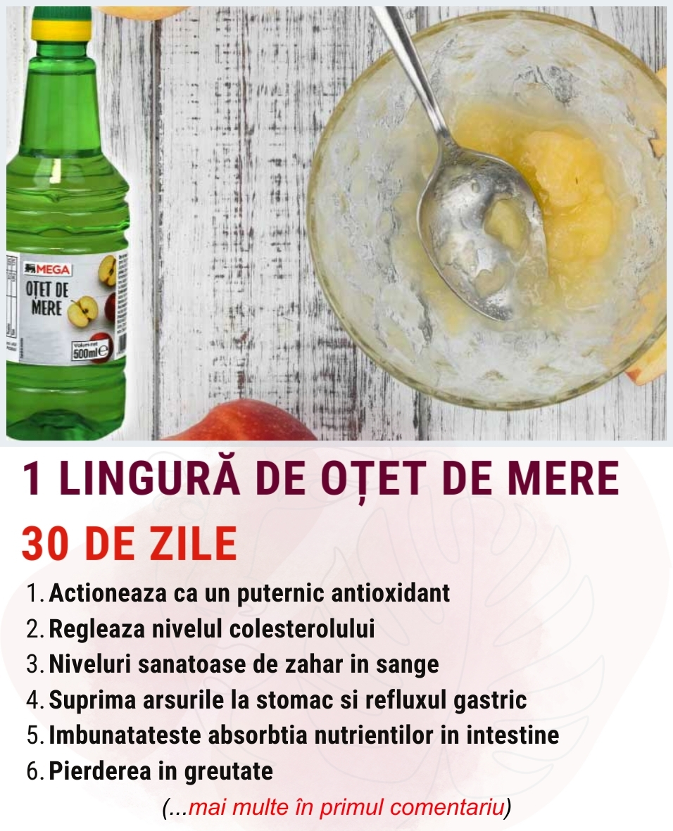 Dar acesta este doar inceputul. Daca consumi in mod regulat o lingura de otet de mere diluat intr-un pahar cu apa, in fiecare zi, timp de 30 de zile, corpul tau iti va multumi.