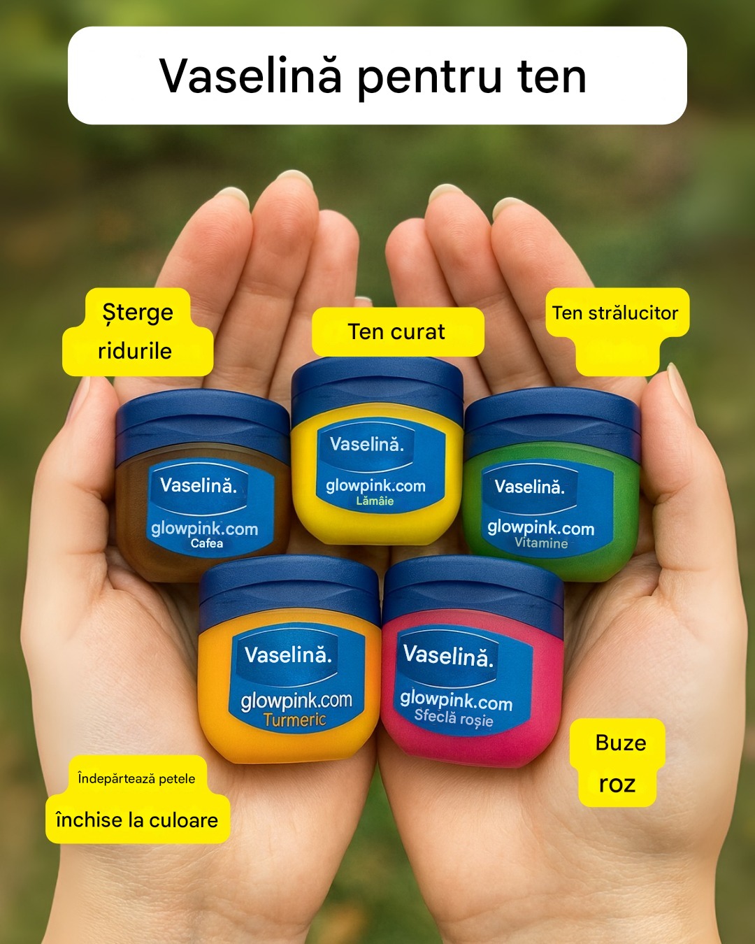 Vaselina (vazelina) este un ocluziv de încredere al dermatologilor, care reține aproape toată apa pe care pielea o pierde în mod natural. Atunci când o amesteci cu plante medicinale specifice – bogate în antioxidanți, vitamine, acizi blânzi și umectanți – devine baza perfectă pentru balsamuri, măști și jeleuri multifuncționale care netezesc liniile fine, estompează petele și redau o strălucire sănătoasă. Mai jos sunt zece remedii DIY simple și accesibile: primele șapte sunt versiuni reîmprospătate ale produselor tale preferate, urmate de trei amestecuri noi-nouțe pentru a completa o rutină completă de îngrijire de la cap până în picioare.