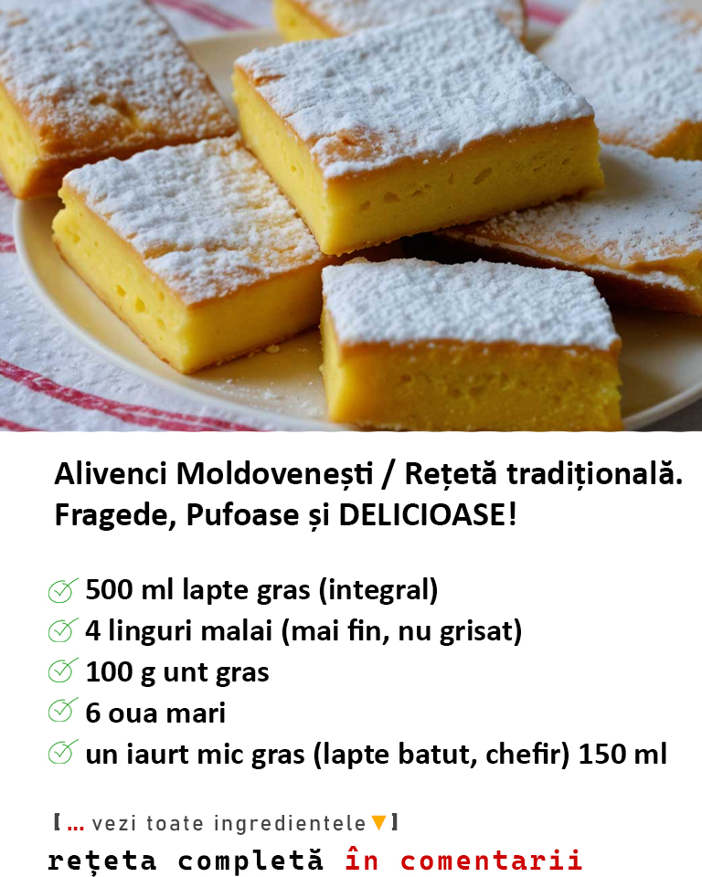 Alivencile moldovenești sunt un desert simplu, dar deosebit de gustos, care aduce în farfurie aromele autentice ale Moldovei. Prepararea lor nu necesită tehnici complicate, iar ingredientele sunt accesibile, ceea ce le face perfecte pentru a fi gătite în orice gospodărie.