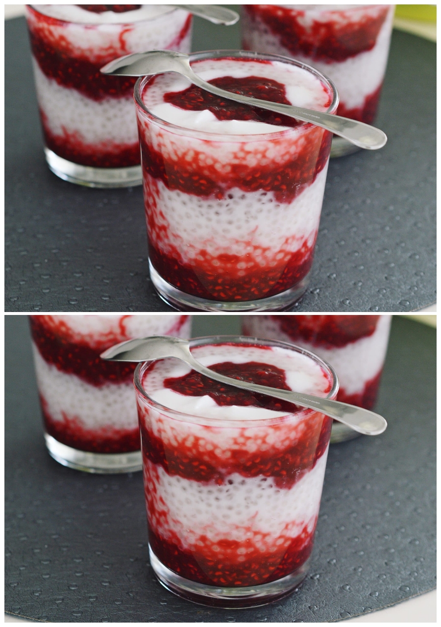Este o rețetă exotică, cremoasă, natural fără gluten și extrem de versatilă. Perlele de tapiocă devin translucide și delicate, absorb aroma bogată a laptelui de cocos, iar contrastul cu aciditatea zmeurei proaspete transformă totul într-o experiență gourmet. 🍓