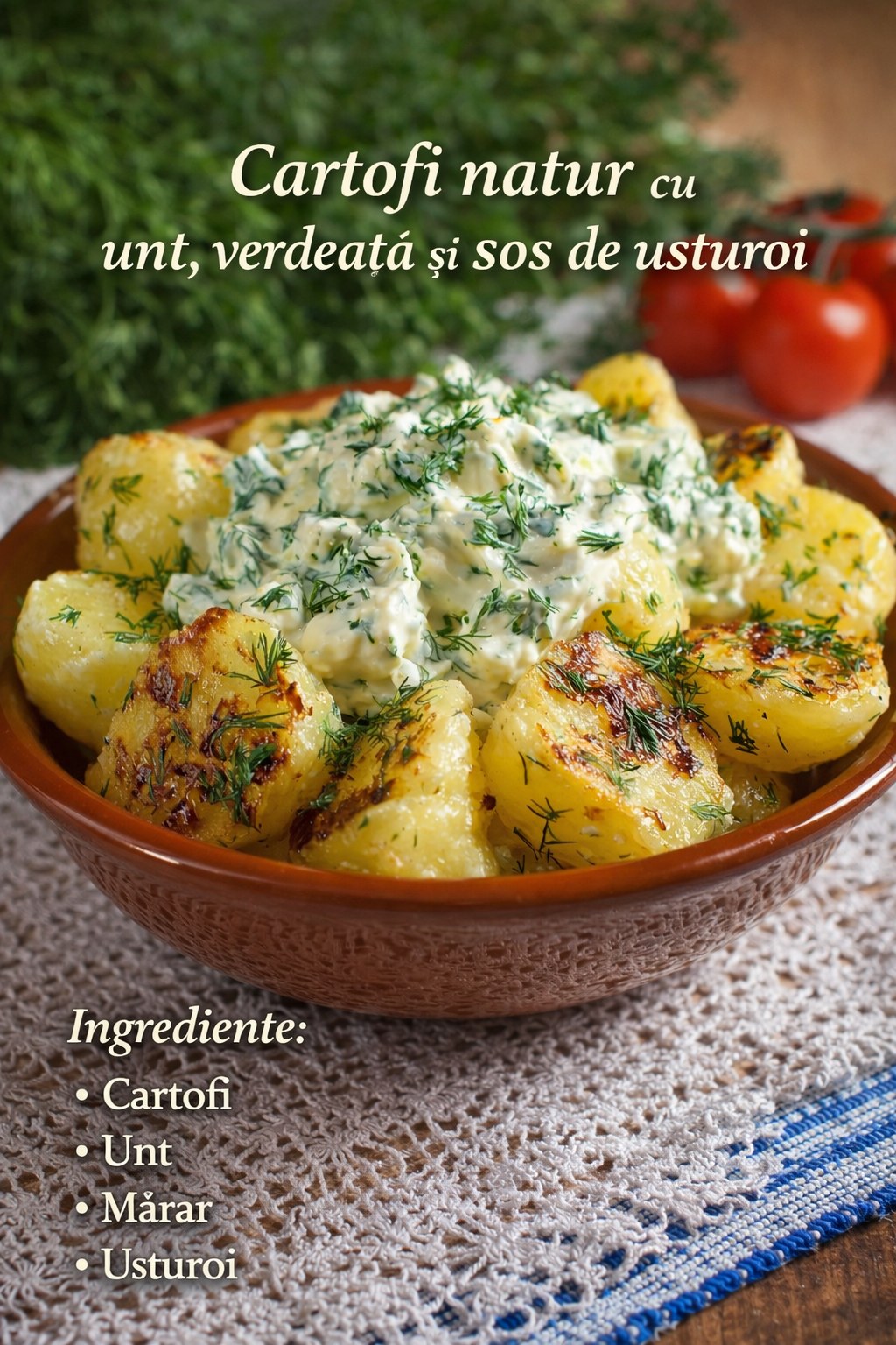 🥔 Cartofi Natur cu Unt, Verdeață și Sos de Usturoi: Rețeta Simplității Absolute