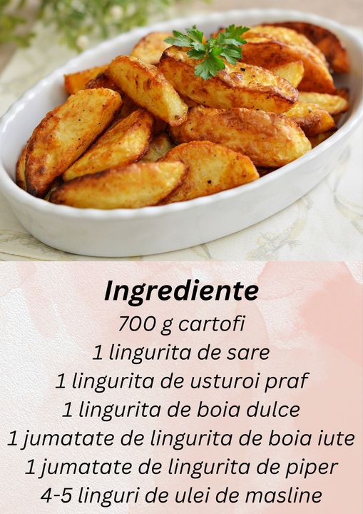 Cine poate rezista unor cartofi wedges aurii, crocanți la exterior și pufoși la interior? 😋 Fie că îi pregătești ca garnitură pentru un burger suculent, lângă o friptură sau pur și simplu ca o gustare alături de un sos de usturoi, această rețetă este salvarea oricărei gospodine.