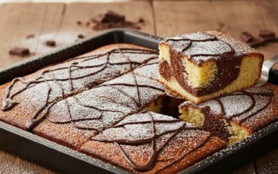 Reteta pentru Chec marmorat la tavă dreptunghiulară !Un chec marmorat turnat în tavă largă, unde vanilia și cacaoa dansează în…