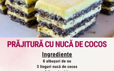 🍰 Prăjitură cu nucă de cocos, vanilie și mac – Desertul care va deveni vedeta mesei tale! Dacă ești în…