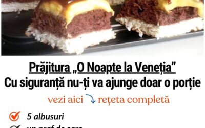 Prăjitura „O Noapte la Veneția” – Cu siguranță nu-ți va ajunge doar o porție! 🎭🍰 Dacă ești în căutarea unui…