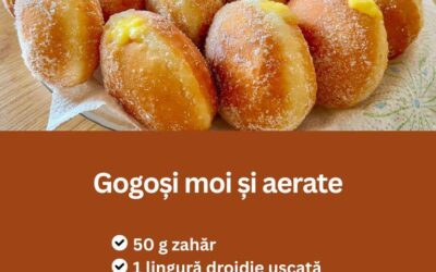 Gogoși moi și aerate Ingrediente Ingrediente necesare:50 g zahărCoaja rasă de la o portocală sau lămâie1 lingură drojdie uscată250 ml lapte călduț1…