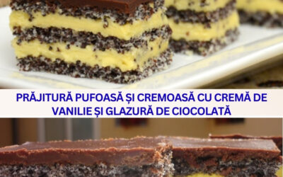 🍰 Prăjitura „Nor de Vanilie”: Pufoasă, Cremoasă și Învelită în Ciocolată Dacă ești în căutarea desertului perfect care să combine…