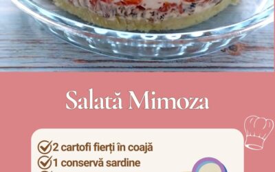 Salată Mimoza clasică, aromată REȚETA Ingrediente pentru salată:1 conservă sardine2 cartofi fierți2 morcovi fierți1 ceapă4 ouă fiertesare după gustmaioneză după gustIngrediente pentru…