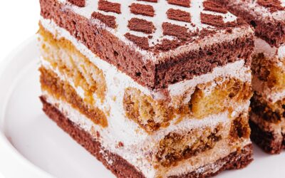 Prăjitură cu pișcoturi în cremă și foi cu cacao