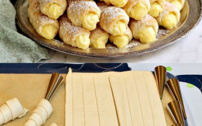 🥐 Cornete sau Rulouri din Foietaj cu Cremă de Vanilie – Rețeta Ușoară, Rapidă și Delicioasă Dacă ești în căutarea…