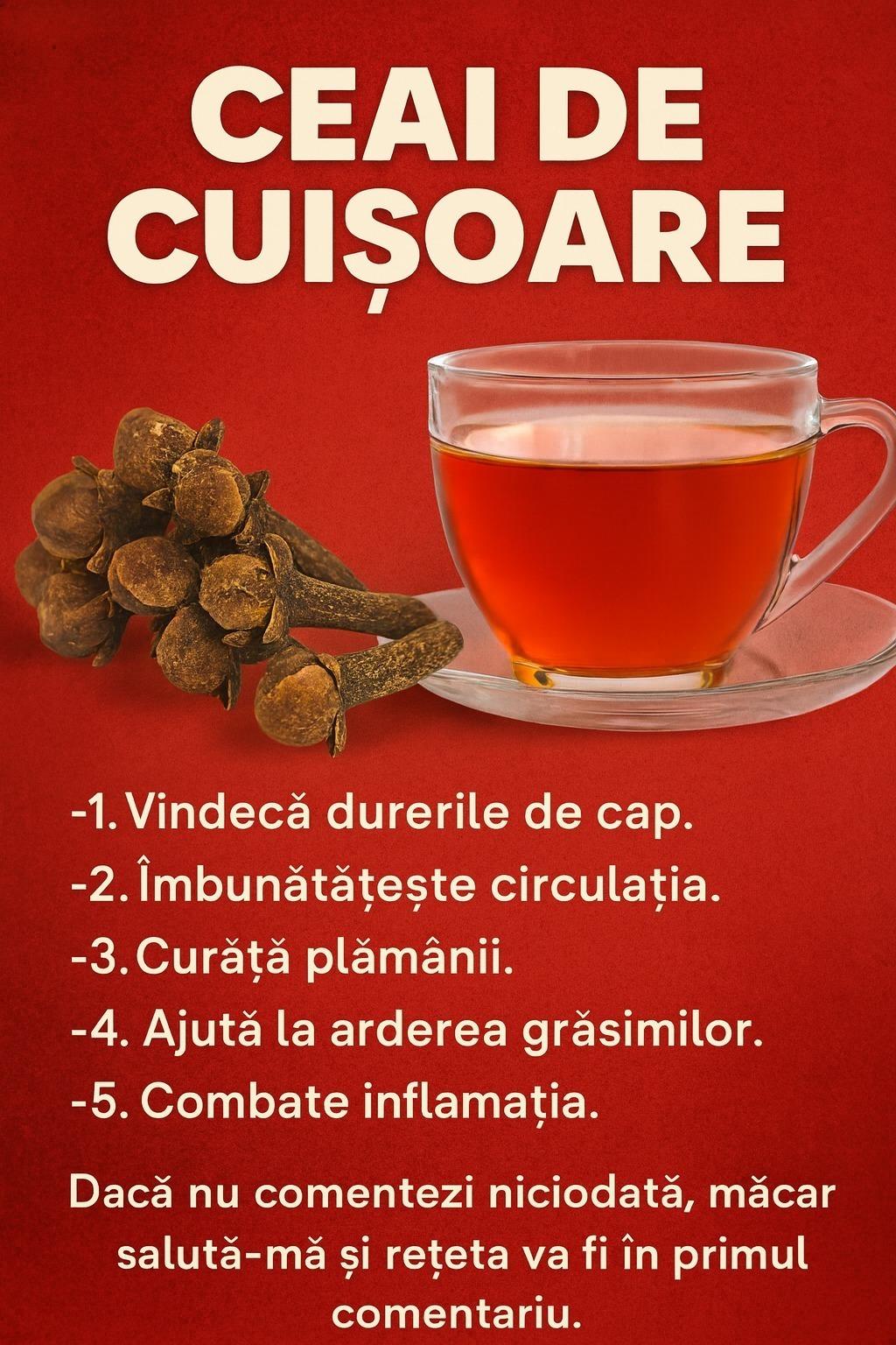 Printre cele mai populare modalități de utilizare se află ceaiul de cuișoare, o băutură simplă, dar cu beneficii impresionante. În cele ce urmează, descoperi ce poate face pentru organism și cum îl poți prepara acasă în câteva minute.