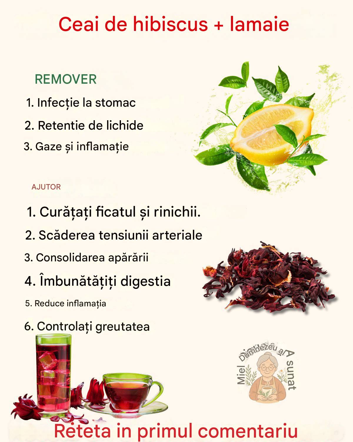 Mai multe studii au arătat că un consum regulat de ceai de hibiscus ajută la reducerea tensiunii arteriale la persoanele cu hipertensiune arterială ușoară până la moderată. Lămâia, fiind bogată în potasiu, contribuie și ea la acest proces, echilibrând nivelurile de sodiu din organism.