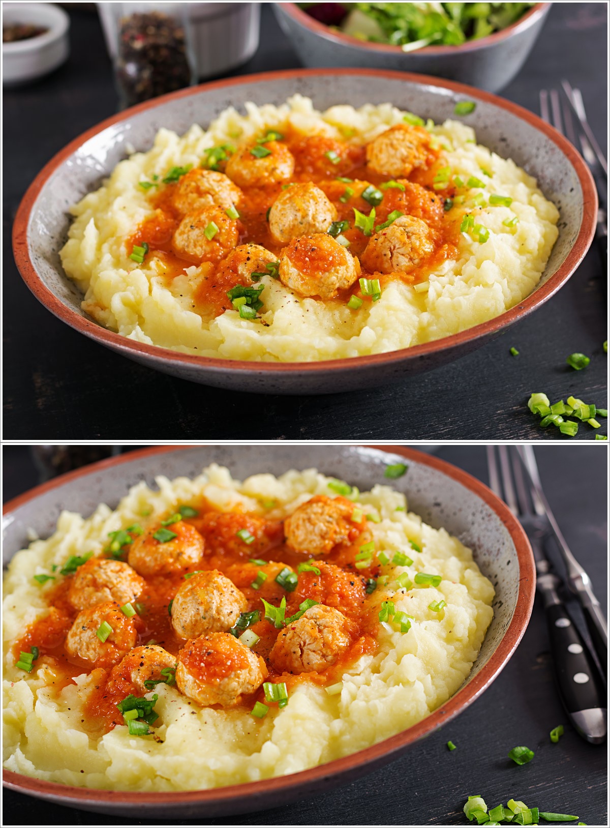 Chifteluțe în Sos de Roșii cu Piure de Cartofi: O Mâncare Tradițională și Reconfortantă 🥘
