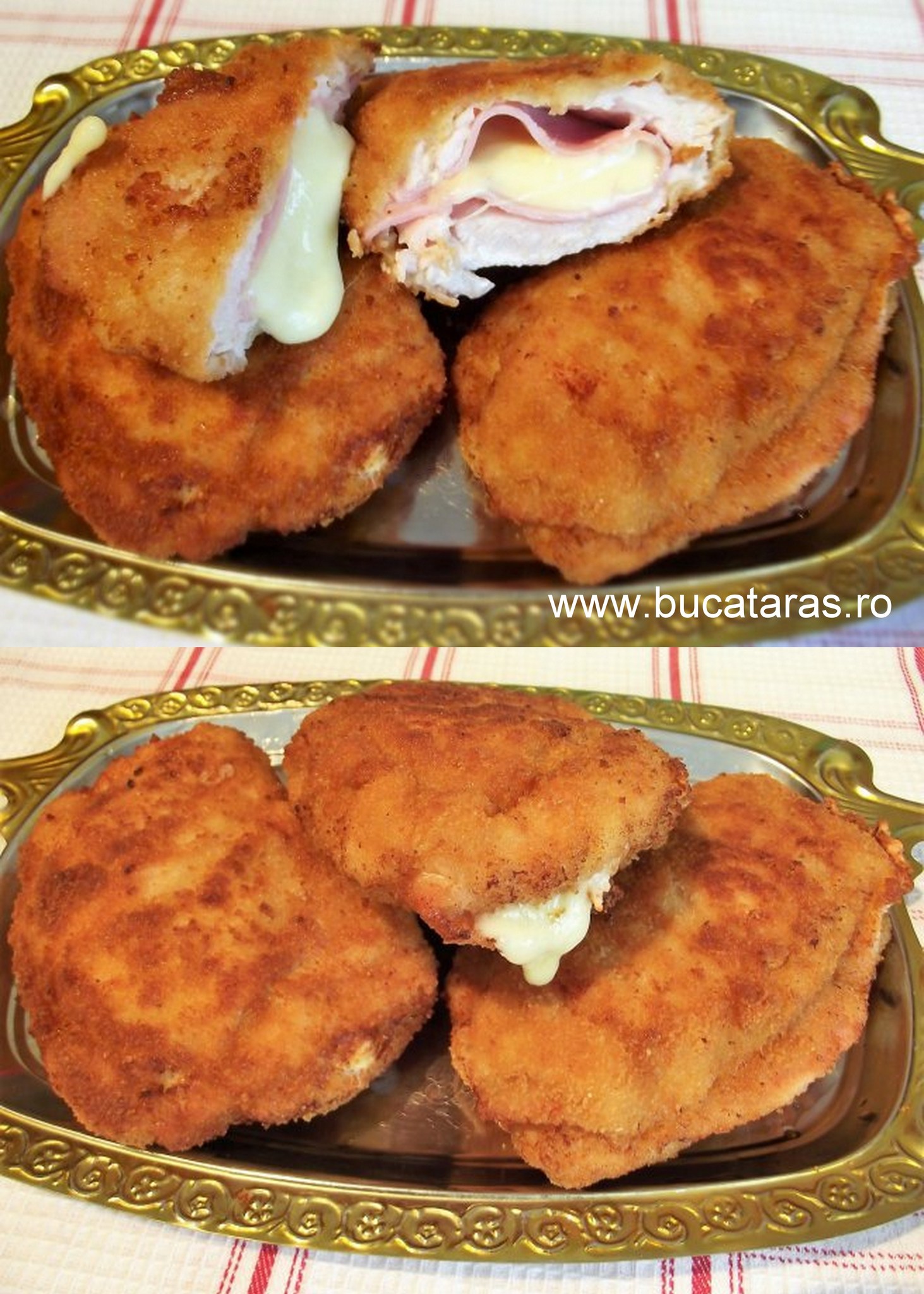 Imaginați-vă: un piept de pui fraged, învelit într-o crustă aurie și crocantă, care ascunde în interior șuncă fină și o porție generoasă de brânză topită. Sună bine, nu-i așa? 😋