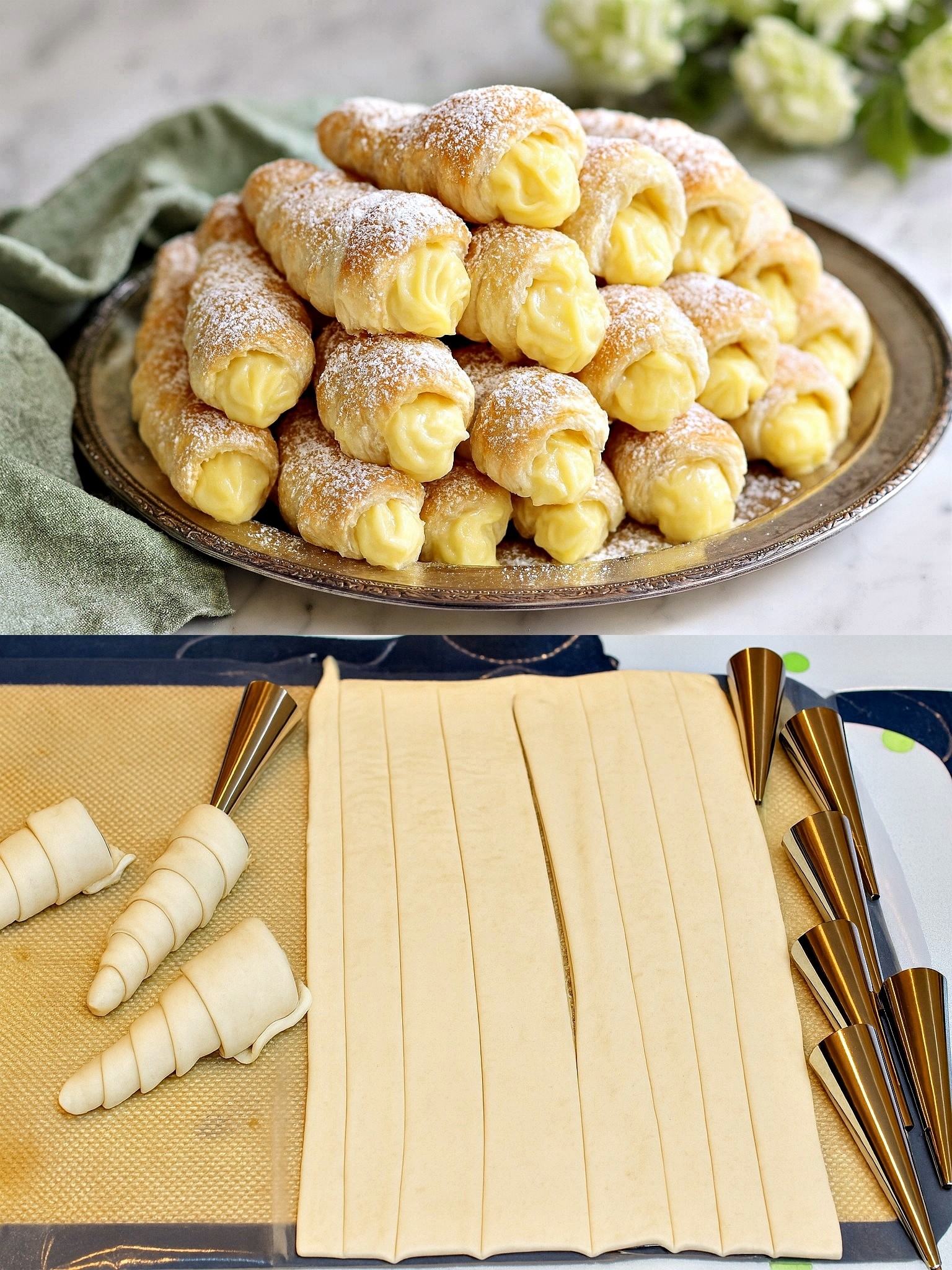 🥐 Cornete sau Rulouri din Foietaj cu Cremă de Vanilie – Rețeta Ușoară, Rapidă și Delicioasă