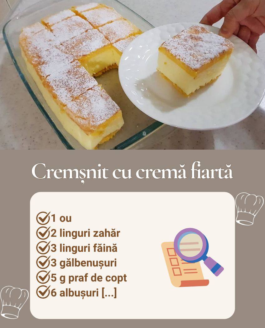 🍰 Cremșnit cu Cremă Fiartă: Secretul unui Desert Fin și Aromat