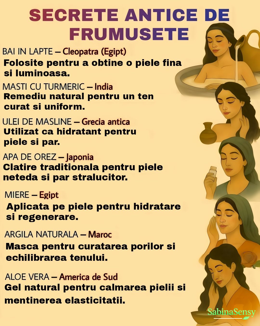 Toate aceste practici ne amintesc ca frumusetea autentica vine din lucruri simple, naturale si din grija constanta pentru corpul nostru.
