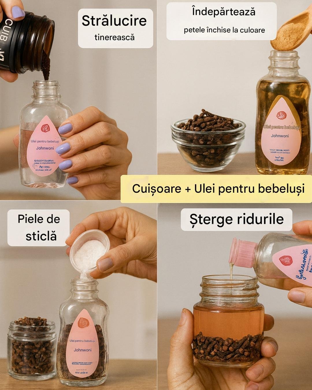 Combinația dintre cuișoare și uleiul pentru bebeluși – o cremă hidratantă blândă, pe bază de ulei mineral – creează o combinație interesantă. Uleiul mineral acționează ca un ocluziv, formând o barieră pentru a bloca hidratarea, așa cum se menționează în recenzii din surse precum Verywell Health. Acest lucru poate fi deosebit de util pentru pielea uscată, ajutându-o să se simtă mai netedă și mai suplă.