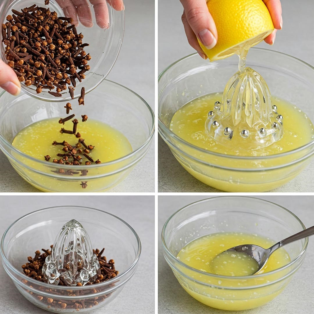 Amestecați sucul de la o jumătate de lămâie cu 1 linguriță de cuișoare măcinate