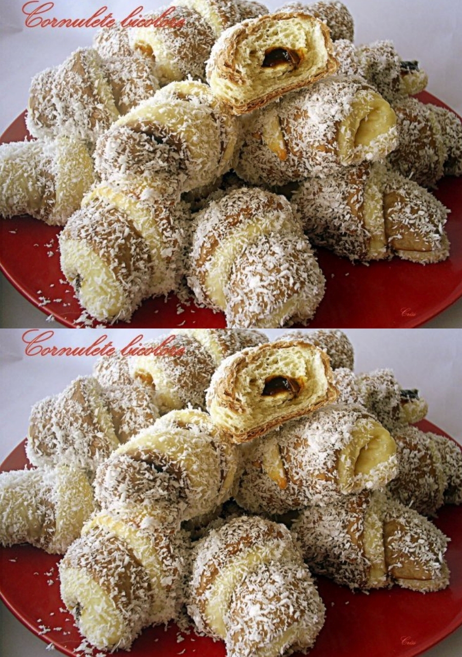Dacă ești în căutarea unui desert care să îmbine nostalgia gustului de acasă cu un aspect vizual spectaculos, cornulețele bicolore sunt alegerea perfectă! Această rețetă transformă clasicele cornulețe fragede într-o delicatesă în două culori, ideală pentru mesele de sărbătoare sau pentru o pauză de cafea plină de răsfăț. ✨