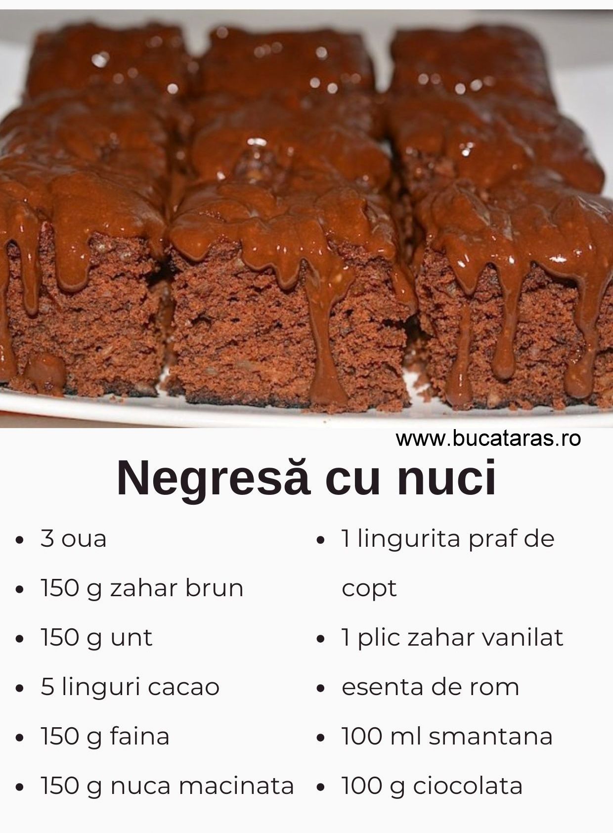 Negresa este, fără îndoială, desertul „salvator” în orice bucătărie. Este rapidă, economică și extrem de satisfăcătoare. Fie că o preferi simplă, cu multă nucă sau glazurată cu ciocolată fină, această prăjitură aduce zâmbetul pe buze tuturor! 😋
