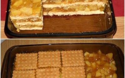 🍎 Desert cu mere, biscuiți și budincă: Rețeta fără coacere care te va cuceri! Dacă ești în căutarea unui desert…