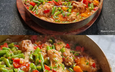 Mâncare de pui cu fasole păstăi, sos de roșii și usturoi – Rețeta rapidă 🍗🌿 Dacă ești în căutarea unui…