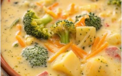 Supă Cremă de Broccoli și Cartofi cu Cheddar: Confort la Bol 🥣✨ Există puține lucruri mai reconfortante decât un bol…