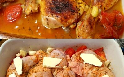 🍗 Pulpe de Pui cu Roșii și Usturoi, în Sos de Vin – Rețeta Gustoasă la Cuptor 🍅 Dacă ești…