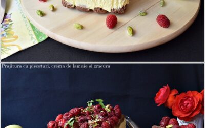 Prajitura cu piscoturi, crema de lamaie si zmeura