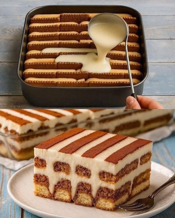 🍰 Prăjitură cu Biscuiți și Budincă de Vanilie: Desertul Fără Coacere Care Se Topește în Gură