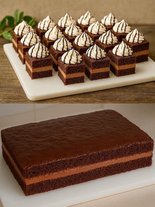 Prajitură cu Frișcă și Cremă de Ciocolată – Rețetă Simplă, Delicioasă și Ușor de Preparat 🍰🍫