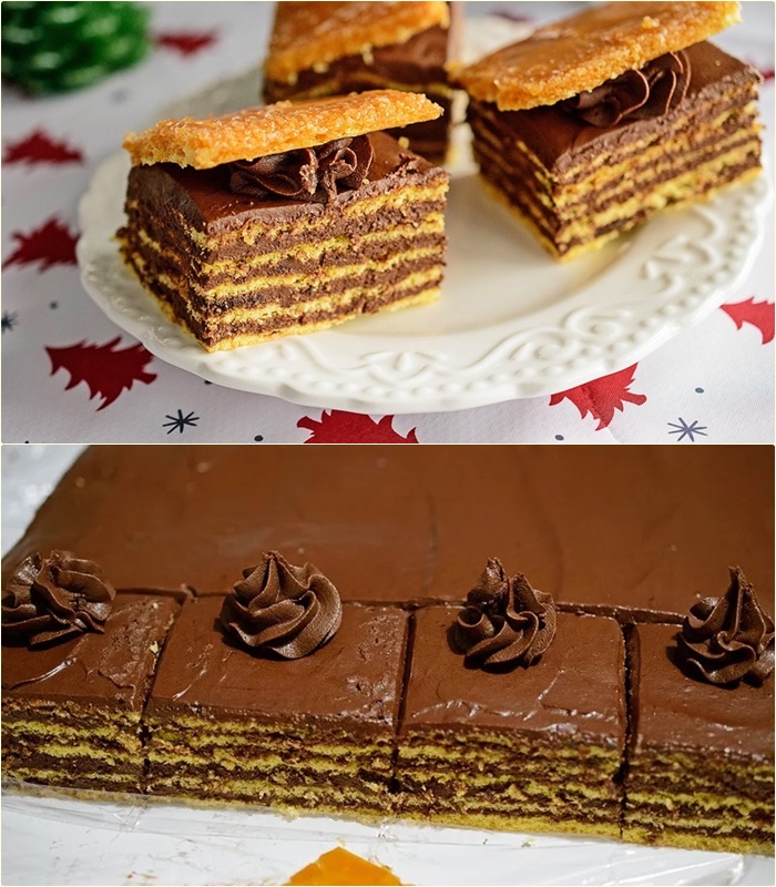 Combinația dintre foile subțiri de pandișpan, crema fină de ciocolată cu unt și glazura croantă de caramel este absolut irezistibilă! 😋