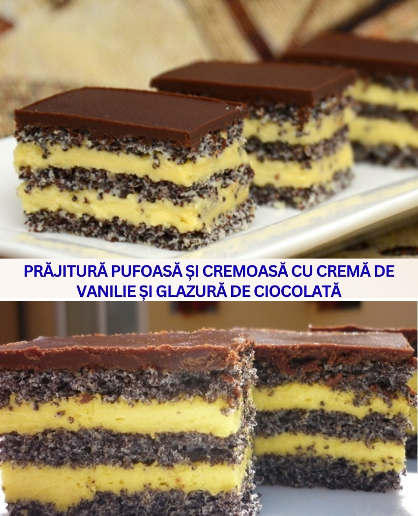 🍰 Prăjitura „Nor de Vanilie”: Pufoasă, Cremoasă și Învelită în Ciocolată