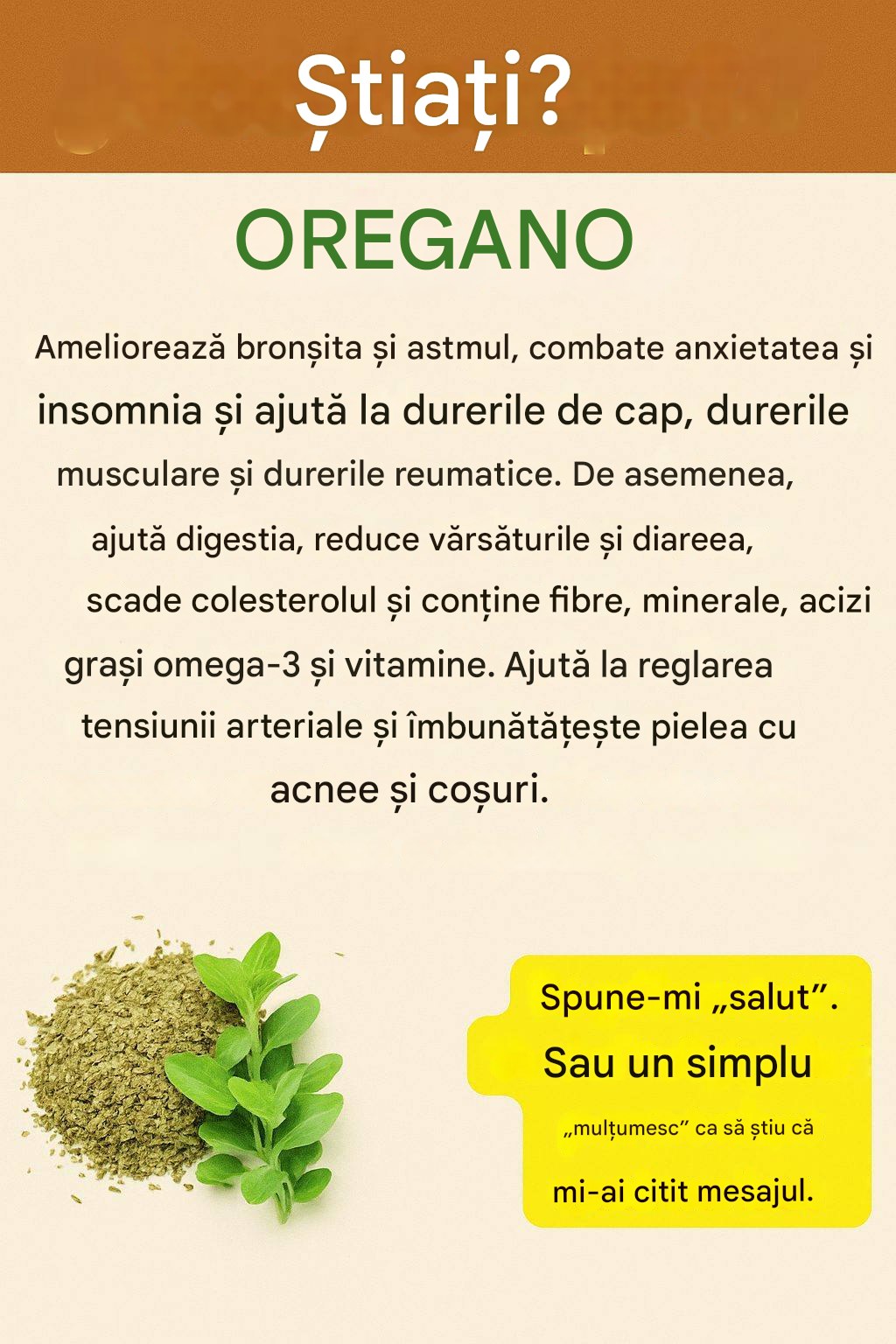 Oregano a fost un pilon al medicinei naturale timp de secole, folosit de culturile antice pentru a combate infecțiile, a ameliora durerea și a îmbunătăți sănătatea generală. Compușii săi activi, cum ar fi carvacrolul, timolul și antioxidanții, îl fac un aliat puternic pentru corp și minte. Fie că este vorba de ceai, ulei sau condiment, oregano este un dar din partea naturii care combină aroma și vindecarea. Ești gata să-i descoperi beneficiile și să-ți transformi viața?