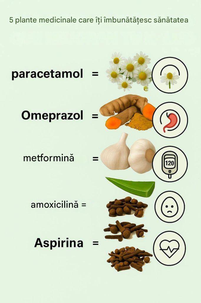 Natura ne oferă un dulap complet cu medicamente prin intermediul plantelor medicinale. Multe dintre ele au proprietăți similare cu medicamentele convenționale, dar fără efectele secundare asociate. Mai jos, prezentăm șase plante naturale și echivalența lor cu medicamentele comune: