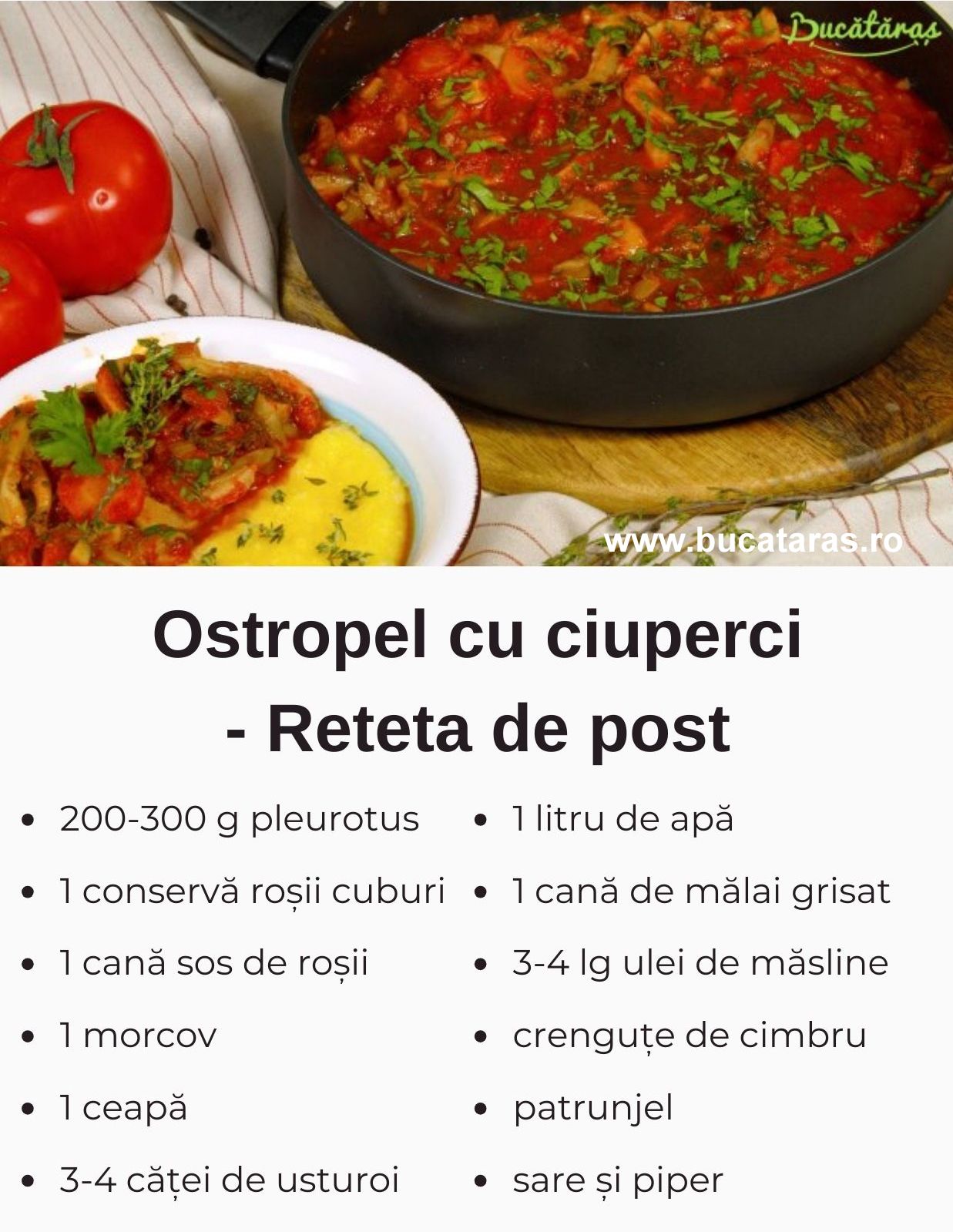 Rețetă de post sau vegană: Ostropel cu ciuperci pleurotus