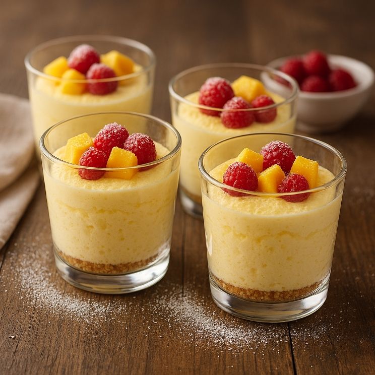 - Fructe proaspete (zmeură, mango, căpșuni)