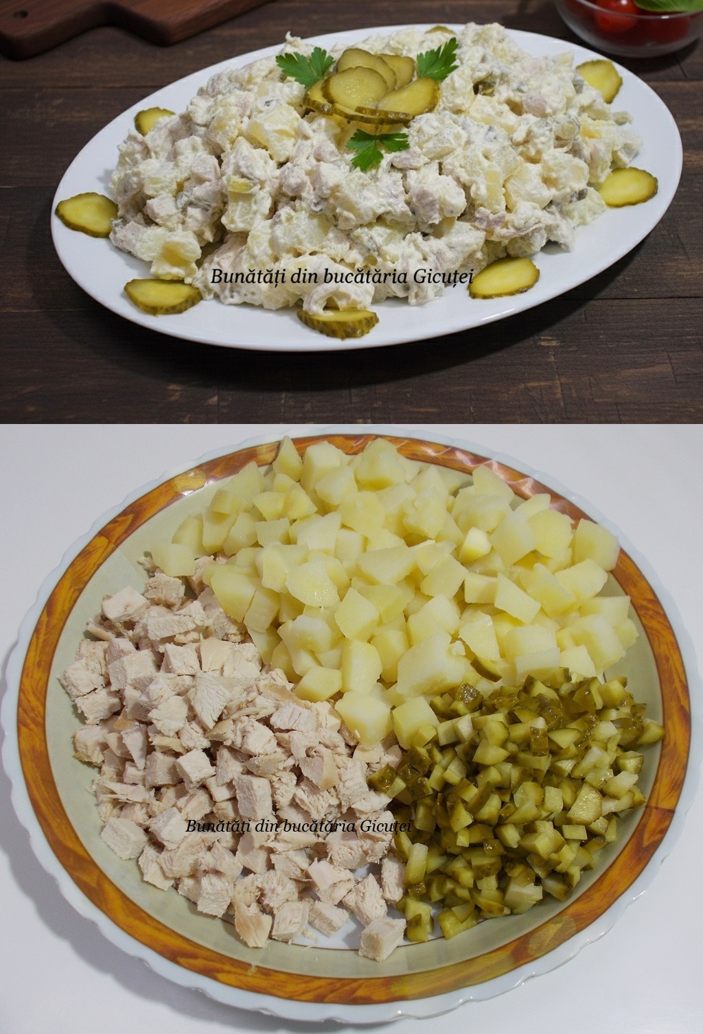 Dacă ești în căutarea unui preparat sățios, care să meargă de minune atât ca masă principală, cât și ca garnitură la o masă festivă, ai ajuns unde trebuie! Această salată de cartofi cu piept de pui și castraveți murați este varianta mai "light" și mai rapidă a clasicei salate de boeuf, dar cu un gust mult mai fresh. 🥒✨