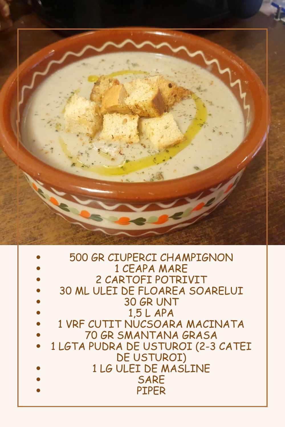 🥣 Supă Cremă de Ciuperci – Rețeta Savuroasă și Catifelată