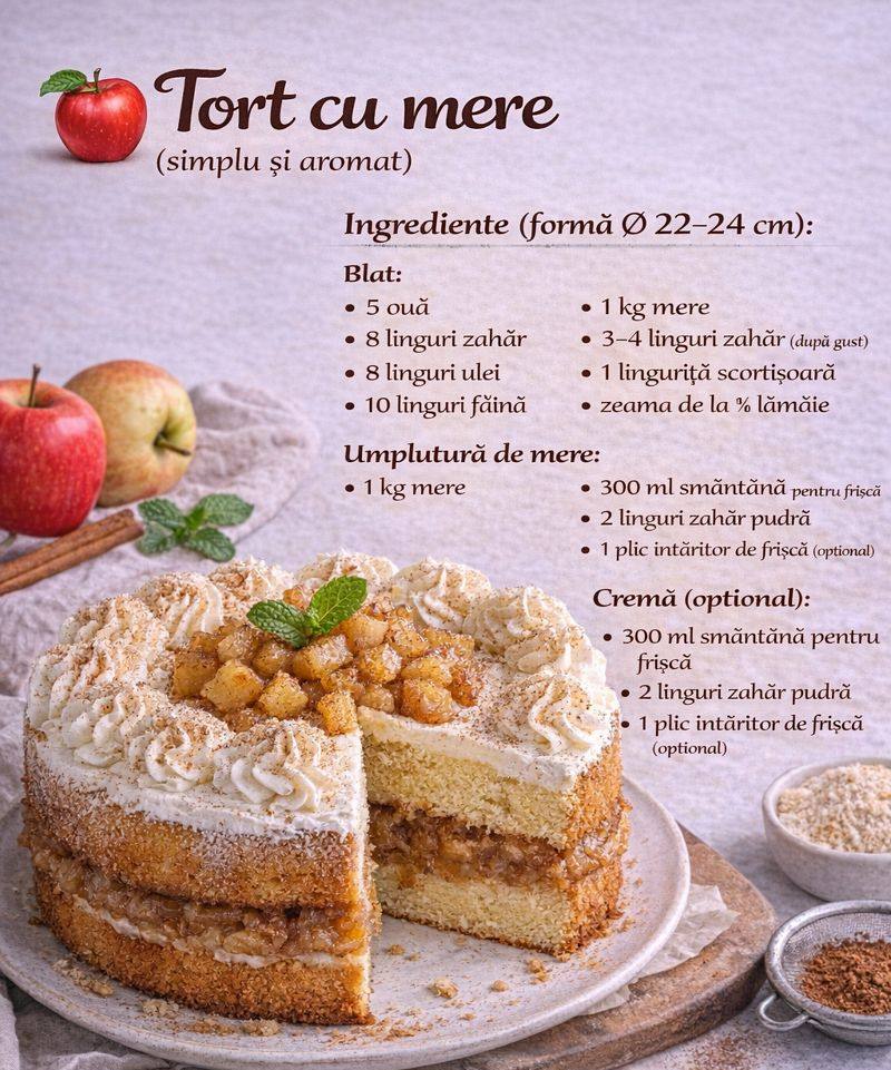 🍎 Tort cu Mere: Rețeta Simpă, Aromată și Pufoasă ca la Bunica
