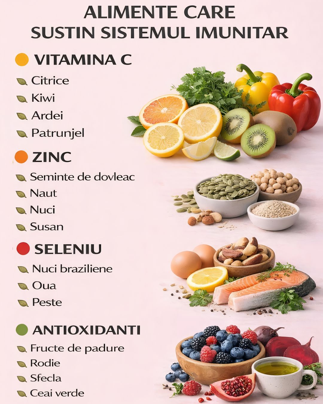 Un sistem imunitar puternic se construieste in fiecare zi, prin alegeri simple si constante in alimentatie. Anumite vitamine, minerale si antioxidanti ajuta organismul sa se apere mai bine, sa lupte cu infectiile si sa se refaca mai rapid.